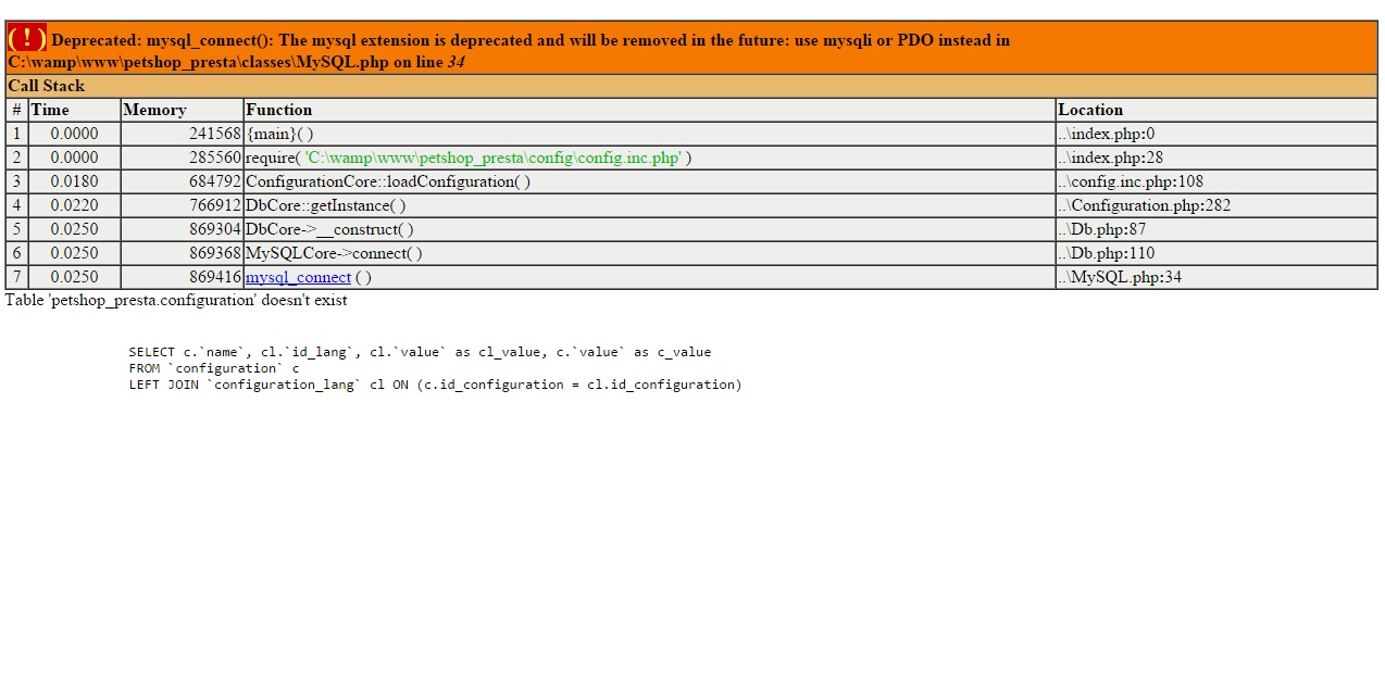 Hello, maybe someone had or has or know how to fix this?I want to have online shop copy to my pc in localhost and test update from 1.4.8 to 1.6.0 because im afraid that everything will mess up. I copied everything from FTP to my wamp\www    created database with the same name as folder,change shop url to localhost,but i get this error... :( some help pls?