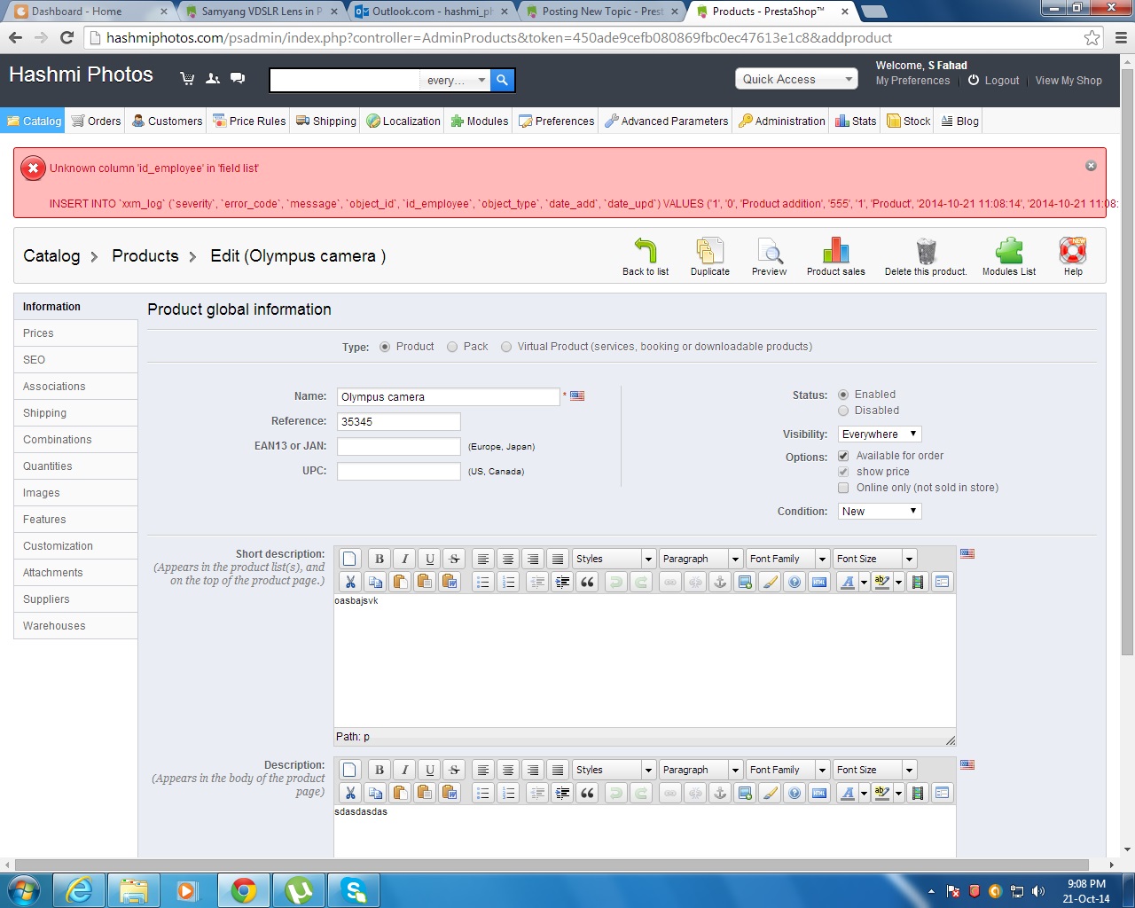 hashmi photos Posted October 21, 2014 Share Posted October 21, 2014 When i add new products and new category give me this ERROR i clear my browsing data and alsocookies and use another browser but still getting this error. Link to comment Share on other sites More sharing options...
