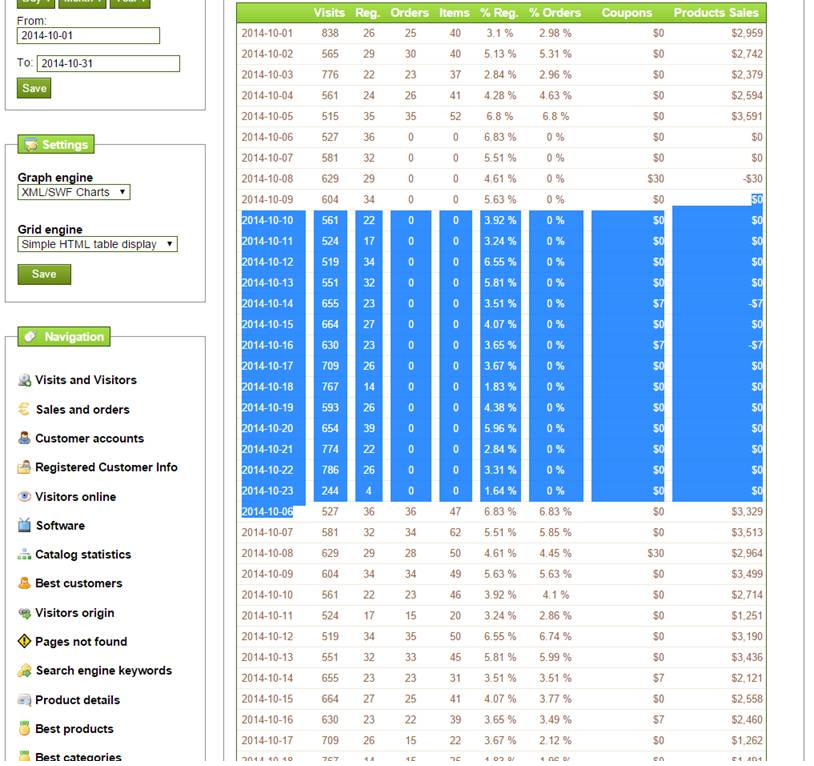 Reina Posted October 23, 2014 Share Posted October 23, 2014 I use prestashop 1.4.4.1 to administrate my web store and when I go to stat tab from my backoffice to check the sales status, it gives me errors on list of days, showing "0 orders" and "0 products sales". However, actually there has been orders and products sales, which have been made on the same day and gives the proper stats on the following list for the day, just underneath the errors. I don't know why this error keeps appearing on my list. Can someone please help on this problem? or have any ideas, what seems to be the problem that occurs this error? Thanks Regards, Jeong. Link to comment Share on other sites More sharing options...