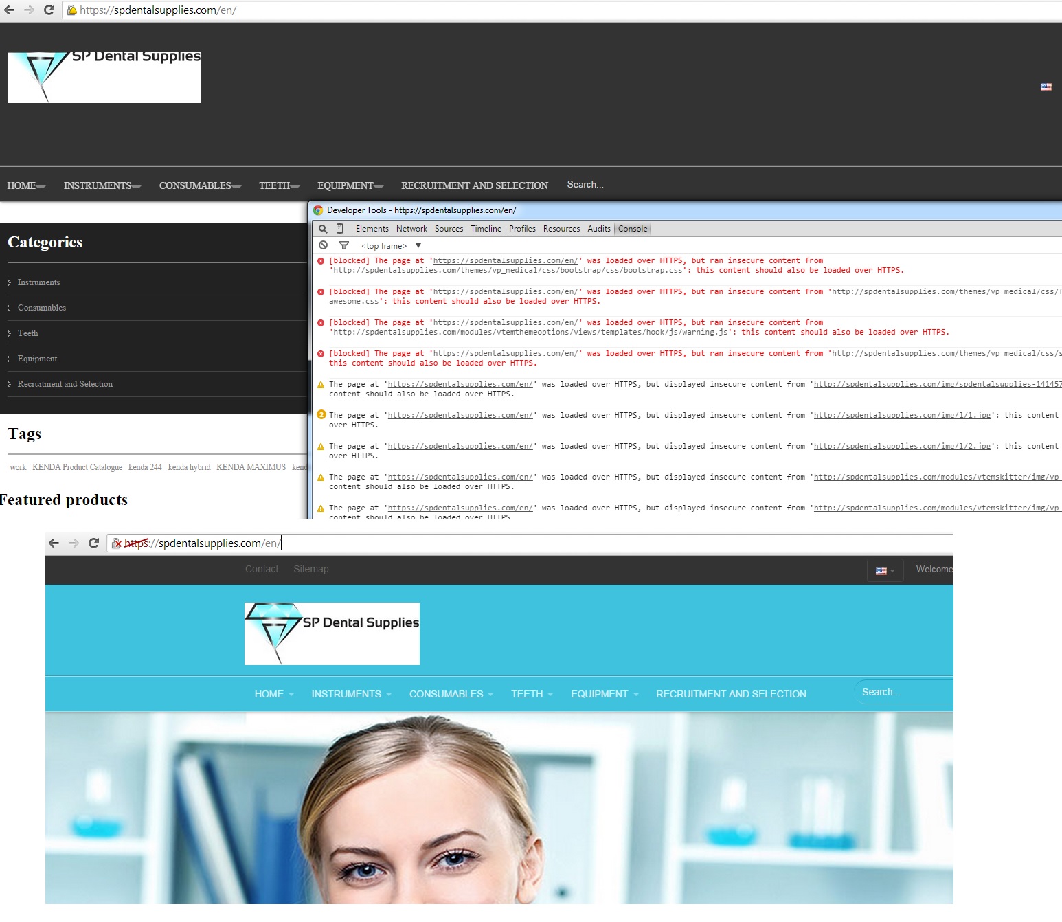spdentalsupplies Posted October 29, 2014 Share Posted October 29, 2014 (edited) Hi, I am seaking some help with finding a solution for the following problem. Our website uses a custom Theme, and after installing in enabling ssl css, js and content like images are still loaded from http. this generates errors, and measn the site isn't correctly displayd until you accept unsecure content in your browser. I have been searching where to and how to update the base url for all the content loaded. But so far no luck. Hopefully someone can help me with a solution for this problem. We are running Prestashop 1.6.0.9. Down below some more details of the configuration and errors: Some of the errors displayd by the browser: [blocked] The page at 'https://spdentalsupplies.com/en/' was loaded over HTTPS, but ran insecure content from 'http://spdentalsupplies.com/themes/vp_medical/css/bootstrap/css/bootstrap.css': this content should also be loaded over HTTPS. [blocked] The page at 'https://spdentalsupplies.com/en/' was loaded over HTTPS, but ran insecure content from 'http://spdentalsupplies.com/modules/vtemthemeoptions/views/templates/hook/js/warning.js': this content should also be loaded over HTTPS. The page at 'https://spdentalsupplies.com/en/' was loaded over HTTPS, but displayed insecure content from 'http://spdentalsupplies.com/modules/vtemskitter/img/vp_medical1.jpg': this content should also be loaded over HTTPS. # ~~start~~ Do not remove this comment, Prestashop will keep automatically the code outside this comment when .htaccess will be generated again # .htaccess automaticaly generated by PrestaShop e-commerce open-source solution # http://www.prestashop.com - http://www.prestashop.com/forums <IfModule mod_rewrite.c> <IfModule mod_env.c> SetEnv HTTP_MOD_REWRITE On </IfModule> RewriteEngine on RewriteRule . - [E=REWRITEBASE:/] RewriteRule ^api/?(.*)$ %{ENV:REWRITEBASE}webservice/dispatcher.php?url=$1 [QSA,L] # Images RewriteRule ^([0-9])(\-[_a-zA-Z0-9-]*)?(-[0-9]+)?/.+\.jpg$ %{ENV:REWRITEBASE}img/p/$1/$1$2$3.jpg [L] RewriteRule ^([0-9])([0-9])(\-[_a-zA-Z0-9-]*)?(-[0-9]+)?/.+\.jpg$ %{ENV:REWRITEBASE}img/p/$1/$2/$1$2$3$4.jpg [L] RewriteRule ^([0-9])([0-9])([0-9])(\-[_a-zA-Z0-9-]*)?(-[0-9]+)?/.+\.jpg$ %{ENV:REWRITEBASE}img/p/$1/$2/$3/$1$2$3$4$5.jpg [L] RewriteRule ^([0-9])([0-9])([0-9])([0-9])(\-[_a-zA-Z0-9-]*)?(-[0-9]+)?/.+\.jpg$ %{ENV:REWRITEBASE}img/p/$1/$2/$3/$4/$1$2$3$4$5$6.jpg [L] RewriteRule ^([0-9])([0-9])([0-9])([0-9])([0-9])(\-[_a-zA-Z0-9-]*)?(-[0-9]+)?/.+\.jpg$ %{ENV:REWRITEBASE}img/p/$1/$2/$3/$4/$5/$1$2$3$4$5$6$7.jpg [L] RewriteRule ^([0-9])([0-9])([0-9])([0-9])([0-9])([0-9])(\-[_a-zA-Z0-9-]*)?(-[0-9]+)?/.+\.jpg$ %{ENV:REWRITEBASE}img/p/$1/$2/$3/$4/$5/$6/$1$2$3$4$5$6$7$8.jpg [L] RewriteRule ^([0-9])([0-9])([0-9])([0-9])([0-9])([0-9])([0-9])(\-[_a-zA-Z0-9-]*)?(-[0-9]+)?/.+\.jpg$ %{ENV:REWRITEBASE}img/p/$1/$2/$3/$4/$5/$6/$7/$1$2$3$4$5$6$7$8$9.jpg [L] RewriteRule ^([0-9])([0-9])([0-9])([0-9])([0-9])([0-9])([0-9])([0-9])(\-[_a-zA-Z0-9-]*)?(-[0-9]+)?/.+\.jpg$ %{ENV:REWRITEBASE}img/p/$1/$2/$3/$4/$5/$6/$7/$8/$1$2$3$4$5$6$7$8$9$10.jpg [L] RewriteRule ^c/([0-9]+)(\-[\.*_a-zA-Z0-9-]*)(-[0-9]+)?/.+\.jpg$ %{ENV:REWRITEBASE}img/c/$1$2$3.jpg [L] RewriteRule ^c/([a-zA-Z_-]+)(-[0-9]+)?/.+\.jpg$ %{ENV:REWRITEBASE}img/c/$1$2.jpg [L] # AlphaImageLoader for IE and fancybox RewriteRule ^images_ie/?([^/]+)\.(jpe?g|png|gif)$ js/jquery/plugins/fancybox/images/$1.$2 [L] # Dispatcher RewriteCond %{REQUEST_FILENAME} -s [OR] RewriteCond %{REQUEST_FILENAME} -l [OR] RewriteCond %{REQUEST_FILENAME} -d RewriteRule ^.*$ - [NC,L] RewriteRule ^.*$ %{ENV:REWRITEBASE}index.php [NC,L] </IfModule> AddType application/vnd.ms-fontobject .eot AddType font/ttf .ttf AddType font/otf .otf AddType application/x-font-woff .woff #If rewrite mod isn't enabled ErrorDocument 404 /index.php?controller=404 # ~~end~~ Do not remove this comment, Prestashop will keep automatically the code outside this comment when .htaccess will be generated again *EDITI found that there is no on/off button for ssl, coud there be an issue!? Also, after enabling ssl, user login and account registration doesn't work anymore. Edited October 29, 2014 by spdentalsupplies (see edit history) Link to comment Share on other sites More sharing options...