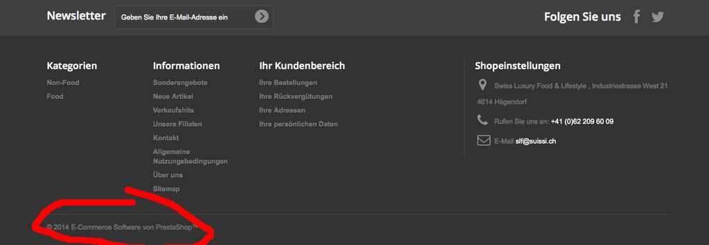 Mutabor Posted November 3, 2014 Share Posted November 3, 2014 Hallo Sebastian, es ist sogar vorgesehen, diesen Copyright-Hinweis zu entfernen, aber gleichzeitig so versteckt, dass es kaum jemand findet. So geht's: Im Back Office Menüpunkt Module öffnen Block CMS suchen Hier Einstellungen anklicken Ganz nach unten scrollen Häkchen vor der allerletzten Option Display "Powered by PrestaShop" in the footer entfernen Da ist wohl keine deutsche Übersetzung vorhanden, außerdem heißt es gar nicht mehr "Powered by ..."! Aber egal, in Version 1.5 war die Lösung übrigens schon genauso. Link to comment Share on other sites More sharing options...