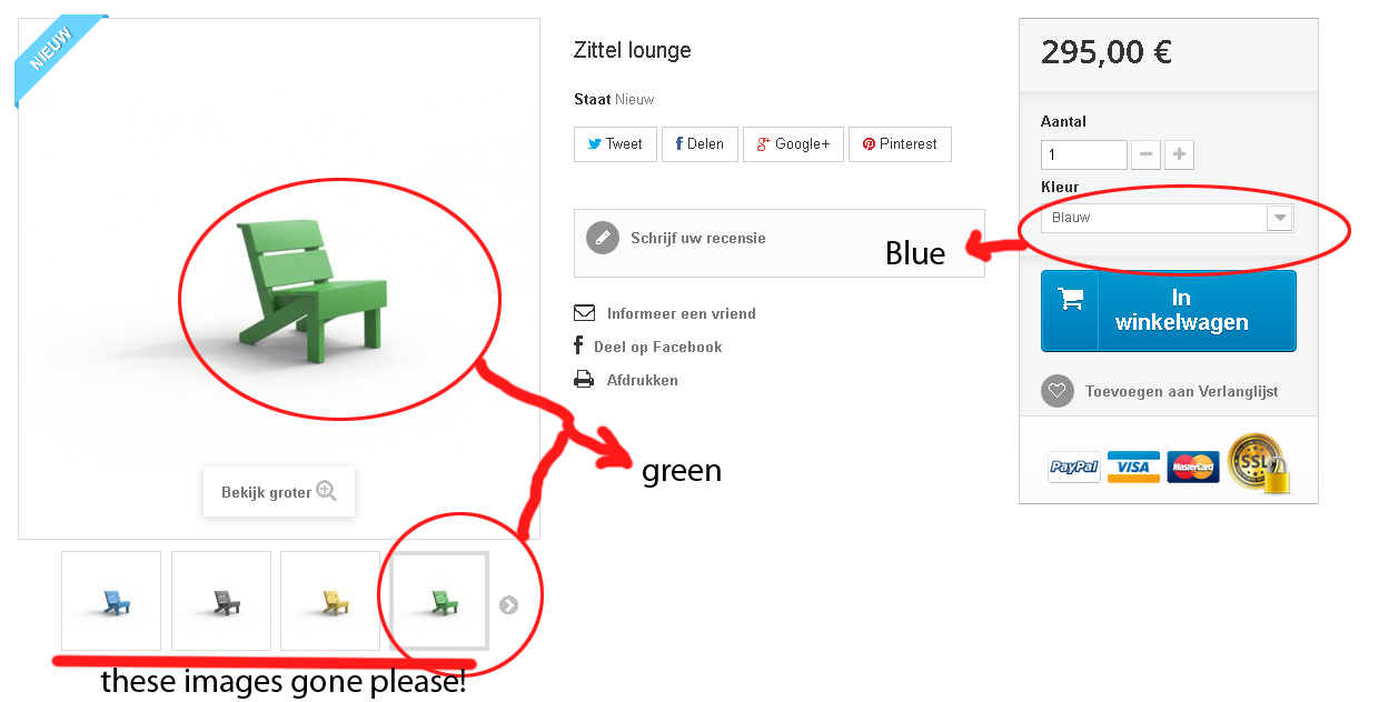 deek Posted November 3, 2014 Share Posted November 3, 2014 I have products in different colors with corresponding images. You can choose the images from a dropdown menu on the product page. So far so good. But these color option are uploaded to the product images so they are also visible beneath the product main image. Therefore you can select a green one below while having your color set to blue. This is confusing. I want the images below gone. Is that possible? Any help is welcome, thanks in advance! Link to comment Share on other sites More sharing options...