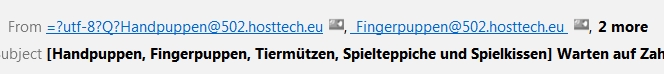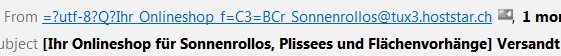 Derivo Posted November 4, 2014 Share Posted November 4, 2014 Hallo Freunde. Bei Mail-Bestätigungen an Kunden für verschiedene Zwecke erscheint als From:?utf-8?Q....usw, also keine klare Kennung des Senders. Habe da 2 Screenshots beigefügt. Kann man das ändern? oder hat es mit Provider/Server zu tun? Danke PS 1.6.0.9 Link to comment Share on other sites More sharing options...