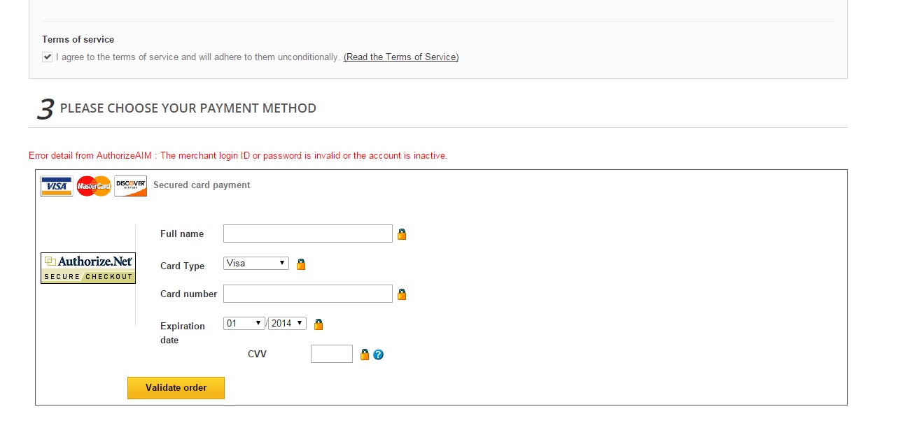 BellagioSecurity Posted November 5, 2014 Share Posted November 5, 2014 Hello,I'm having an issue with checkout. I can not accept credit card payments.I use PAI (payment alliance) / e-processing network as my processor. They don't have a module but they can emulate through the authorize.net module.I have installed the official Authorize.net (Advanced Integration Method) v 1.5.4. In the module I used the Login ID and Key that e-processing network provided me, and they set up my account in their system to emulate through authorize.net.However when a customer attempts to check out they get an error that says "Error detail from AuthorizeAIM : The merchant login ID or password is invalid or the account is inactive".I've contacted e-processing network to verify that my login credentials are correct and they are. They were not able to help me any further.Does anyone have any suggestions? I've attached a screenshot to this post of the errorThanks in advanced! Link to comment Share on other sites More sharing options...