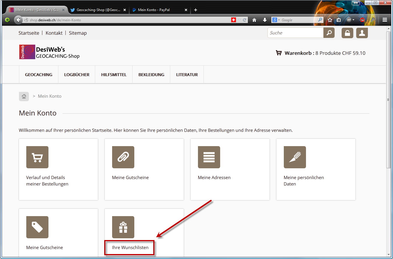 thepan Posted November 5, 2014 Share Posted November 5, 2014 (edited) Backoffice--->Lokalisierung--->Uebersetzungen: Bei Programmteil: Installierte Module Ihr Template: {Dein Theme} Ihre Sprache: Deutsch(oder was auch immer) Bearbeiten klicken. Auf der neuen Seite klick auf "Schliessen Sie alle Bloecke" dann noch mal klicken damit alle Bloecke offen sind. Dann mit "F3" nach "Ihre Wunschlisten" suchen. Gibt mehrere Stellen mit gleichem Text musst mal testen welcher der richtige ist. Edited November 5, 2014 by thepan (see edit history) 1 Link to comment Share on other sites More sharing options...