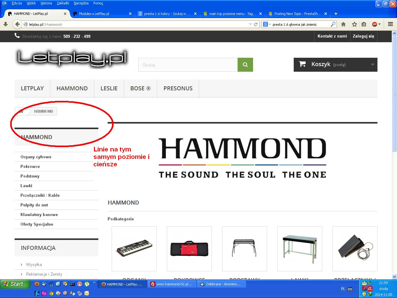 Limak01 Posted November 5, 2014 Share Posted November 5, 2014 (edited) Mam drobny problem i niewiem jak go przeskoczyc. Linia bloku kategorii w lewej kolumnie jest troche nizej niż z prawej strony prezentacja kategorii i linia jest za gróba jak dla mnie, odrazu zaznacze że w zakładce pozycje w konfiguratorze na żywo nie da się tego podciągnąć. Zwracam się z prośbą o wskazanie pliku i linijki kodu odpowiadające za to - chyba że jest inny sposób. Z góry dziękuje za szybką odpowiedż. Zdjęcie wyżej opisanego problemu w zalączniku. Edited November 5, 2014 by Limak01 (see edit history) Link to comment Share on other sites More sharing options...
