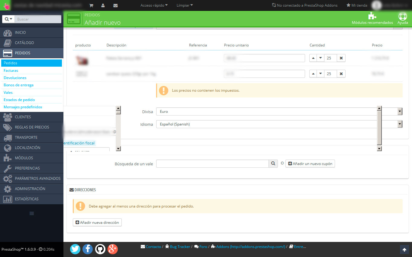 No puedo añadir nueva dirección a cliente