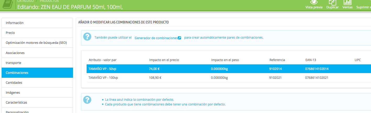 ionyx Posted November 9, 2014 Share Posted November 9, 2014 Buenos días , Tengo una instalación de joomla 1.6.0.6 y uso el theme standard. El problema detectado es que cuando tengo un producto con una combinación ( dos tamaños de frascos de fragancia ). Cuando aplico un descuento, en la información del producto, el precio antiguo ( situado a la izquierda del % de descuento) en vez de salir el precio del tamaño seleccionado aparece la suma de los dos tamaños tal y como podéis ver en la imagen adjunta. He probado a trastear con una copia del fichero product.js pero no doy con la tecla. Si quito el descuento del producto, el precio sale bien para cada tamaño. ¿Alguien podría ayudarme? Un saludo y gracias. Link to comment Share on other sites More sharing options...