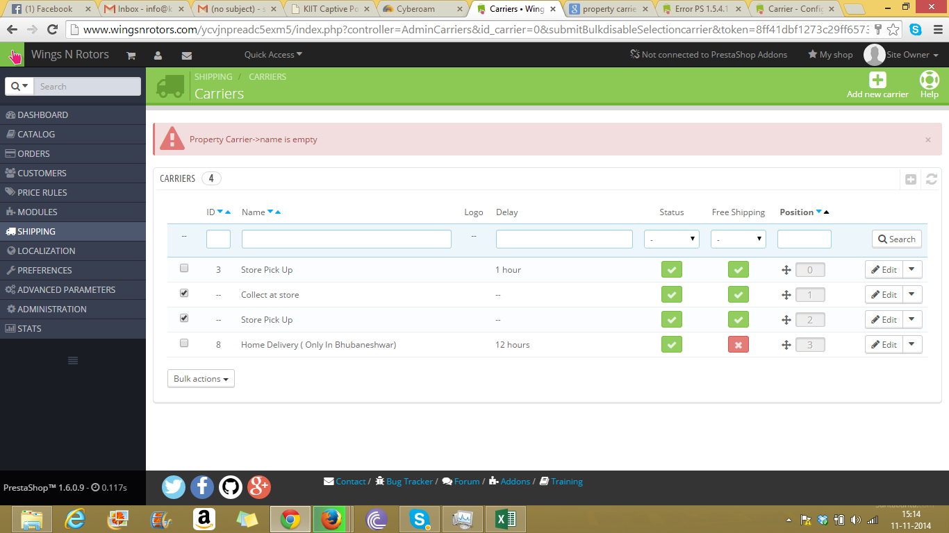 shauviks Posted November 11, 2014 Share Posted November 11, 2014 i am getting the fllowing errors while deleting two of my carriers Property Carrier->name is empty Link to comment Share on other sites More sharing options...