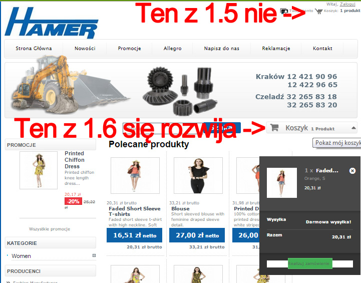 Theme który tam widzicie jest przeróbką z default-bootstrap. Jedyne co tam ruszałem, to pliki css, więc nie mam pojęcia jak mogłem zepsuć koszyk. Nie znam się za bardzo na ajax-ie i javascripcie, więc byłbym widzięczny za radę i wyjaśnienie. Dzięki z góry za pomoc!