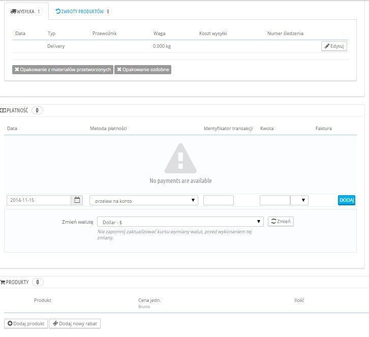 Mam problem z wyświetlaniem zamówień, a mianowicie nie pokazuje mi wybranych przez klienta: płatności, rodzaju wysyłki oraz zakupionych produktów. Suma końcowa jest wyświetlana.