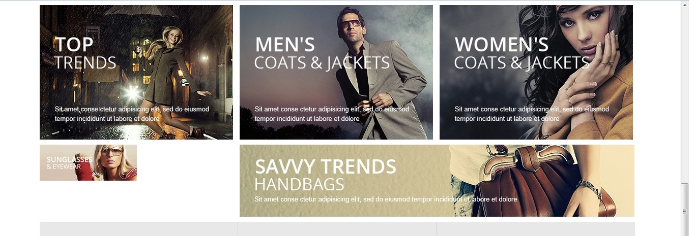 Planuję przenieść tę cześć sklepu w górę i wykorzystać ją jako menu z kategoriami w formie kafelków (troche jak w Windows 8). Sam kwadratowy obrazek i naniesona na nmi nazwa kategorii. Bez dodatkowych opisów. Chcialbym wybrane kategorie wyróżnić podwójnym rozmiarem, tak by zajęły np. 2 "miejsca" (jak ta torebka na dole). W tym celu chciałbym aby obrazki wyświetlały się w 4 kolumnach, nie w 3 jak obecnie. Proszę o pomoc z dodaniem 4 kolumny. A może jest jakiś inny sposób na wykonanie kafelków w tym miejscu.