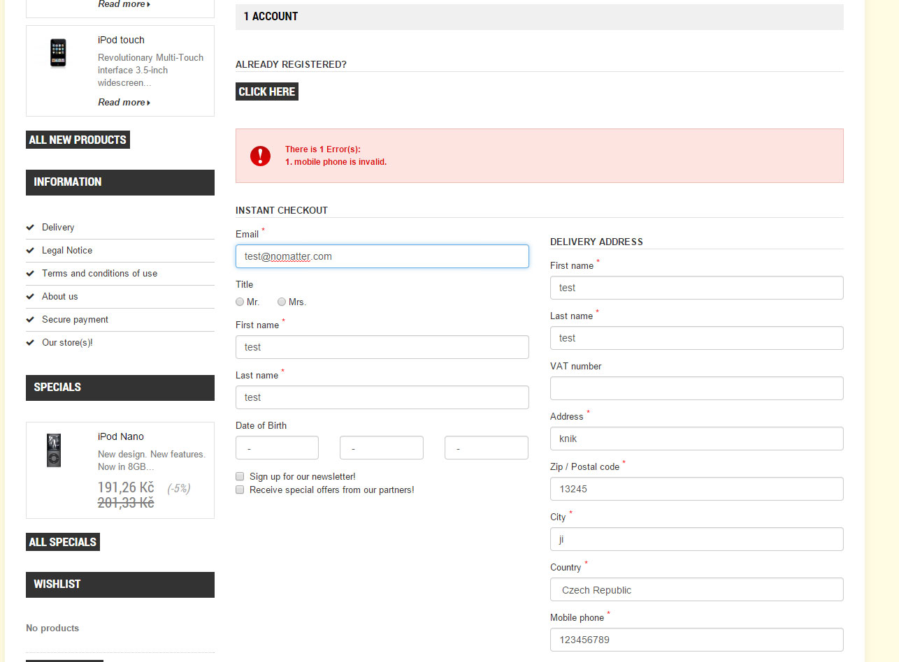 LuckyModule Posted November 17, 2014 Share Posted November 17, 2014 Hi, i really need help with my project. Currently iam stuck on problem with filling mobile phone in one step order which shows me error massage: mobile phone is invalid. Phone is filled right, but iam still getting this message. Even when have disabled mobile phone number via presta backend. Anyone knows how to solve this? Thank you Hello, You allowed to file a bug in the theme, replace the file with the default theme This file: authentication.tpl Link to comment Share on other sites More sharing options...
