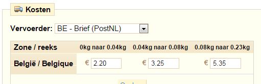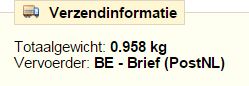 Foto 3> shippingtab met de gewichtrange (en prijs)