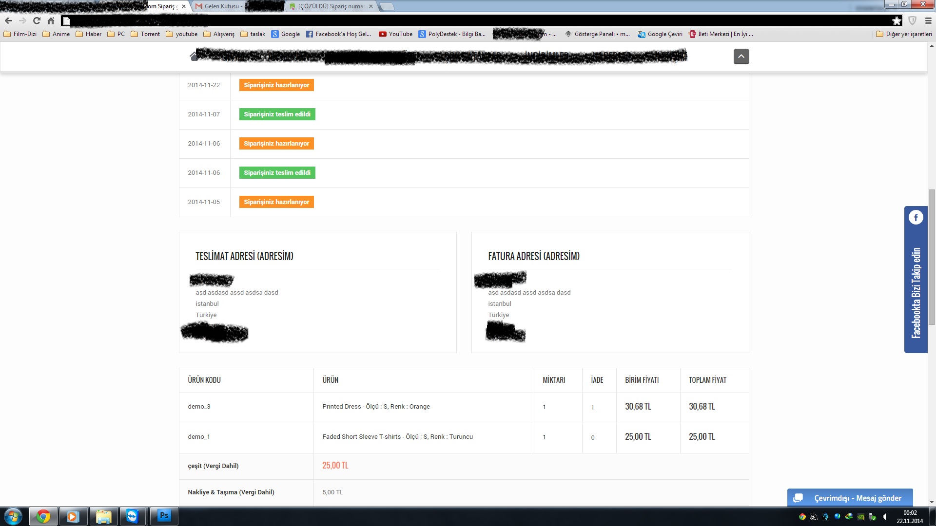 rakhaj Posted November 21, 2014 Share Posted November 21, 2014 Merhaba , sistemde ciddi bir sorun oldu sanırım kendi hatamdan dolayı normalde siparişler silinmiyordu bir kod ile siparişleri silmeyi açmıştım şimdi deneme yaparken fark ettim ''siparişinizi adım adım takip edin'' kısmında alakasız siparişleride gösteriyor ürünler kısmında satın alınan fiyatlar falan dogru fakat mesala 1 adet ürün aldık diyelim x kodu y kodlu başka bir ürün daha gösteriyor napacağımı şaşırdım yardımcı olabilecek var mı benim için çok önemli lütfen resimde ekliyorum nasıl göründüğünü görmeniz açısından.resme bakarsanız bugünün tarihi son sipariş birde öncesinde 3-4 sipariş görünüyor. Link to comment Share on other sites More sharing options...
