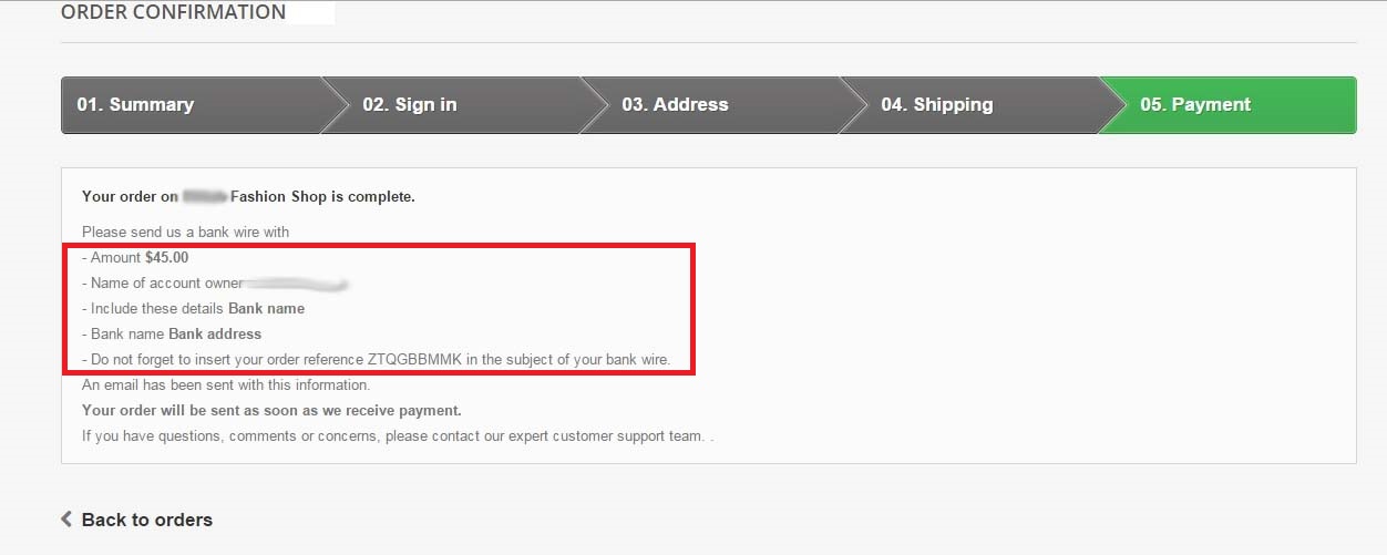 NemoPS Posted November 22, 2014 Share Posted November 22, 2014 The fact is, that text has no class wrapping it. So ideally you should first add a surrounding div to \themes\default-bootstrap\modules\bankwire\views\templates\hook\payment_return.tpl like <div class="mycolor"> {l s='Please send us a bank wire with' mod='bankwire'} <br />- {l s='Amount' mod='bankwire'} <span class="price"> <strong>{$total_to_pay}</strong></span> <br />- {l s='Name of account owner' mod='bankwire'} <strong>{if $bankwireOwner}{$bankwireOwner}{else}___________{/if}</strong> <br />- {l s='Include these details' mod='bankwire'} <strong>{if $bankwireDetails}{$bankwireDetails}{else}___________{/if}</strong> <br />- {l s='Bank name' mod='bankwire'} <strong>{if $bankwireAddress}{$bankwireAddress}{else}___________{/if}</strong> {if !isset($reference)} <br />- {l s='Do not forget to insert your order number #%d in the subject of your bank wire' sprintf=$id_order mod='bankwire'} {else} <br />- {l s='Do not forget to insert your order reference %s in the subject of your bank wire.' sprintf=$reference mod='bankwire'} {/if} <br />{l s='An email has been sent with this information.' mod='bankwire'} <br /> <strong>{l s='Your order will be sent as soon as we receive payment.' mod='bankwire'}</strong> <br />{l s='If you have questions, comments or concerns, please contact our' mod='bankwire'} <a href="{$link->getPageLink('contact', true)|escape:'html':'UTF-8'}">{l s='expert customer support team. ' mod='bankwire'}</a>. </div> Then you can target it with css like .mycolor {color:red} In, say, global.css Link to comment Share on other sites More sharing options...