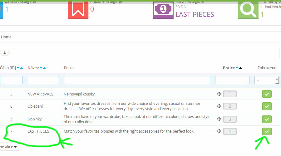 teriy Posted November 26, 2014 Share Posted November 26, 2014 (edited) Hello, I am using the default-bootstrap version 1.0 template from Prestashop 1.6.0.9. I'm trying to create a new category (LAST PIECES) in my main menu, but it doesn't show up! I created the category 24 hours ago, I thought there'll be some pause between write it in the server, but still, there's nothing. So far what worked for me was Change the name of already existing category. I'm stuck with only 3 categories and don't know what to do. The category shows up in the Category tree and in the Footer. I'm attaching the Screenshots. Please help me. Thank you, Tereza Edited November 26, 2014 by vekia (see edit history) Link to comment Share on other sites More sharing options...