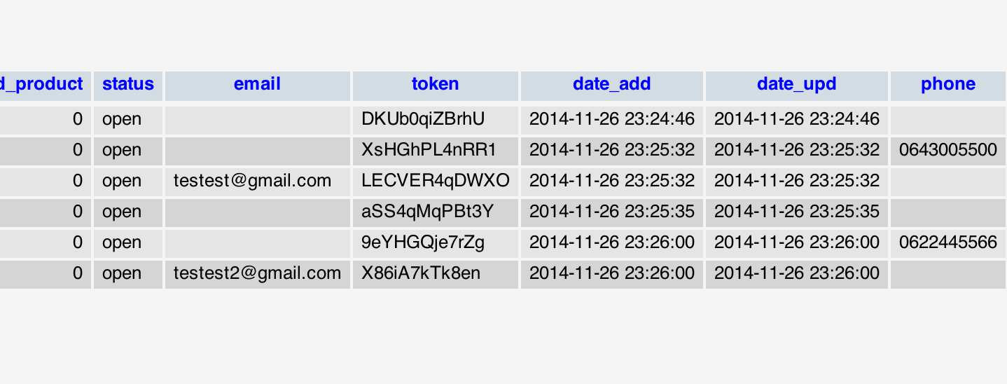 julesfromparis Posted November 27, 2014 Share Posted November 27, 2014 (edited) Bonjour, J'essaye de créer plusieurs champs personnalisés pour mon formulaire de contact. Pour cela j'ai suivi le tutoriel de Nemo1 : http://nemops.com/adding-new-fields-to-prestashop-contact-form/#.VHZgY1bS6w3 J'ai créé un premier champs "Phone". Mais je ne retrouve pas mon nouveaux champs en BO ou par mail. De plus, j'ai 3 entrées qui se créer dans ma base SQL au lieu d'une (voir image) : Une sans rien Une avec le mail Une avec le téléphone Quelqu'un pourrait m'aider svp ? Pour info, je suis en 1.5.6.1 Es-ce un problème de version ? Edited November 28, 2014 by julesfromparis (see edit history) Link to comment Share on other sites More sharing options...