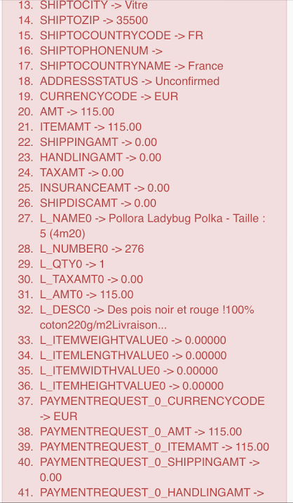 DevNet Posted December 2, 2014 Share Posted December 2, 2014 @sophie : Garde un peu de cheveux quand même Sinon pour @PirouetteJC , évitez d'indiquer ce genre d'information en public sur le forum. Je doute que les personnes soient contente qu'on divulgue ces identifications sur eux. A vu des captures, il ne s'agit pas d'un retour d'erreur "conventionnel" mais plutôt un débug paypal. Est-ce la vraie erreur de départ ? Link to comment Share on other sites More sharing options...