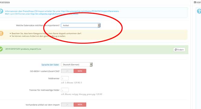 prestaneuling Posted November 28, 2014 Author Share Posted November 28, 2014 Hallo prestaneuling, Im Backoffice, beim csv-Import ganz rechts aussen im Fenster gibt es doch genau das was du suchst - Beispieldateien für alle möglichen Import-Varianten. Mit den Besispiel- Dateien kannst du spielen und auch deine Dateien nach gleichem Schema anpassen. Grüsse Whiley -genau das habe ich versucht, allem Anschein nach sind die Beispieldateien allerdings fehlerhaft oder ich bin schlicht zu blöd um diese anzupassen. Ich brauche z.B. längst nicht alle Spalten/Bezeichnungen, dannh habe ich die Überschriften angepasst/verändert damit diese verständlicher (für mich) werden. Also nach meinem Wissen das was man darf und das was auch gehen sollte. Aber am Ende geht das vielleicht auch nicht unter Excel, oder aber nur mit bestimmten Einstellungen. Link to comment Share on other sites More sharing options...