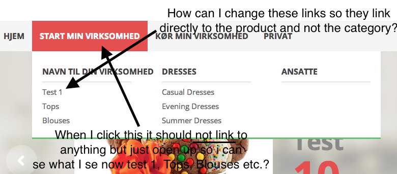 TorbenS Posted November 28, 2014 Share Posted November 28, 2014 Please see attached screen shot that explains my question. Question 1- remove link from top menu I would like to know if and how it is possible to remove the link from the top menu under front page so it doesn't link to the category page when you're for example click on "Start min virksomhed", it goes to the category page I want to remove this link so nothing else happens besides that it opens up so I can click one of the child links. Question 2 - link directly to product Is it possible to change the links that are under the category "Star min virksomhed" so they linked directly to the product and not the category page. Thank you for your help. Torben Link to comment Share on other sites More sharing options...