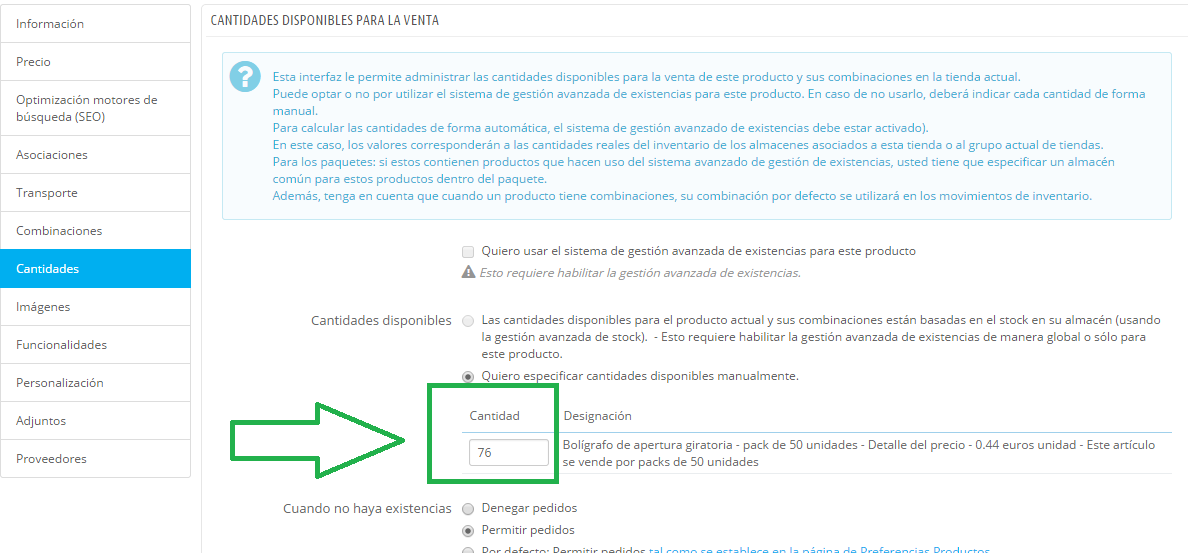 agenciaE Posted December 4, 2014 Share Posted December 4, 2014 Hola,Tengo instalada la versión 1.6.0.9 de prestashop y en ocasiones las cantidades de los productos se ven afectadas no se porque motivo, ni razón.Explico lo que me pasa: En en el panel de administración en Catálogo->Productos se ve un resumen de todos los productos que tienes en la tienda junto con sus cantidades, bien pues esa cantidad que aparece muchas veces pone una mucho mayor de la que realmente es, y no se cual es la causa ni la razón de que prestahop de un día apra otro haga esto.Ya que si te metes en la edición de ese producto la cantidad esta correcta, pero en Catálogo se saca una cantidad que no corresponde realmente con la del producto.Ya em ha pasado varias veces y he tenido que atacar directamente a la bbdd para que ese "reflejo" no salga, pero no me parece ni lo más óptimo ni operativo, ya que considero que es un agujero del software que no se por donde me esta viniendo.Voy a adjuntar unas capturas para que vean el ejemplo que me ocurre con este producto en el que en Catálogo marca cantidad 10076 lo cual es un error, ya que realmente tengo 76 cantidades dentro de la ficha de este producto.Hoy coincide que le añade 100 delante del 76 pero no sigue un patrón, hay veces que añade tropecientas cantidades que me gustaría saber de donde y como? A ver si alguien puede ayudarme por favor, es algo bastante desesperante.Gracias.Un saludo. Link to comment Share on other sites More sharing options...