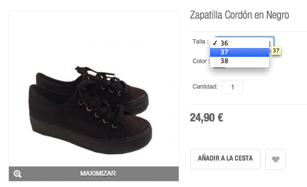 Yame Posted December 9, 2014 Share Posted December 9, 2014 Hola a todos! Tengo un problema en mi carrito de la compra... Adjunto unas imágenes para poder explicarme mejor. En este producto, escojo la talla 37 Pero luego en mi carrito aparece la talla 36 Esto me pasa con todos los productos que tengo. Es como si no recogiera el valor ya que siempre es la primera talla la que se añade al carrito. He borrado todas las combinaciones y las he vuelto a añadir pero nada.... ¿Alguien puede ayudarme por favor? Web: www.anandaboutique.es Prestashop: última versión 1.6.0.9 Link to comment Share on other sites More sharing options...