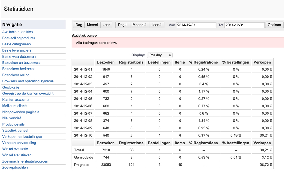 vverloop Posted December 10, 2014 Share Posted December 10, 2014 (edited) Sinds een paar dagen doen de statistieken het niet meer in Prestashop v1.5.6.2 BO. De velden in sommige kolommen hebben de waarde 0. Zie de attachment voor meer info. Ik heb gisteren een aantal modules hersteld die met Statistieken te maken hebben, ook heb ik de cache geleegd. Daarna werkt het weer, maar ik werd vanochtend wakker en keek nogmaals en waren de statistieken weer pleite. Iemand een idee? Servergegevens Servergegevens: Linux #1 SMP Tue Nov 11 17:57:25 UTC 2014 x86_64 Server softwareversie: Apache/2 PHP versie: 5.5.19 Geheugenlimiet: 256M Maximale uitvoeringstijd: 30 Database informatie MySQL versie: 5.6.22 MySQL engine: MyISAM Overige informatie Varnish Cache Edited December 10, 2014 by vverloop (see edit history) Link to comment Share on other sites More sharing options...