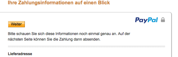 gt-023 Posted December 13, 2014 Share Posted December 13, 2014 Hallo, um gleich mit der Tür ins Haus zu fallen -und ich hoffe ich bin in diesem bereich richtig- hier mein Problem: Sofern eine Zahlung über Paypal stattfinden soll und der Kunde sein PW eingegeben hat, gelangt er zur im Screenshot angezeigten Seite mit einem "Weiter" button und folgendem Text: "Bitte schauen Sie sich diese Informationen noch einmal genau an. Auf der nächsten Seite können Sie die Zahlung dann absenden." Klickt man nun jedoch auf Weiter gelangt man auf keine nächste Seite mehr sondern hat die Kaufabwicklung bereits abgeschlossen und landet auf der abschließenden Bestellübersichtseite und ist fertig. Problem: Gekauft hat er ja schon, da er zuvor bereits zahlungspflichtig bestellen (bzw. äquivalent) im Shop angewählt hat, dennoch würde ich mich als Kunden wundern, wenn ich weiter klicke und dann bereits durch bin, obwohl anderes behauptet wurde. Bug oder gewollt? Hintergrundinfos: - aktuellstes prestashop - eu legal samt paypal modul - paypal.sandbox Link to comment Share on other sites More sharing options...