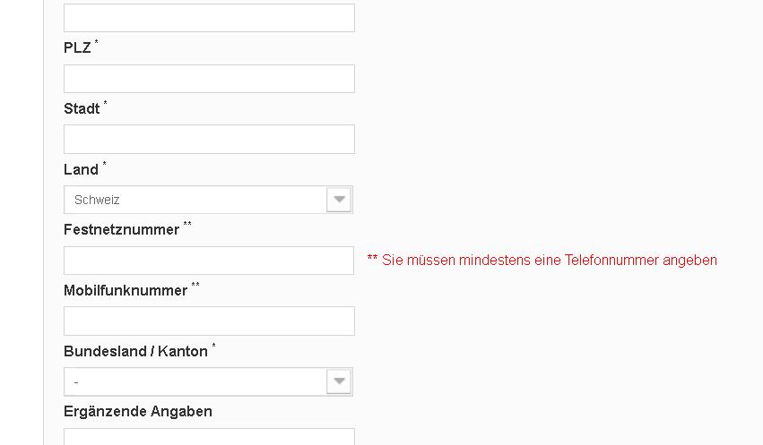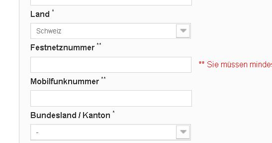 Konkret heisst das, dass bei Vorhandensein von Bundesländern / Kantone automatisch bei der Registrerung nach diesem Eintrag verlangt (= Pflichtfeld) wird.