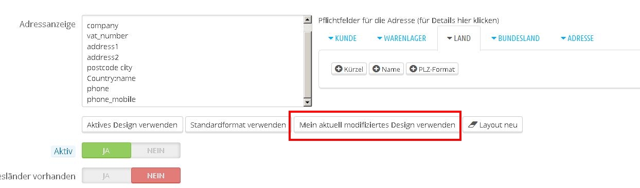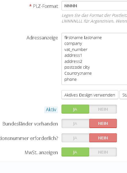 Das bedeutet, wenn du im Back Office beim Land Schweiz den Eintrag "State:name" in der Adressanzeige  hast, dann solltest du ihn einmal entfernen und die Option Mein aktuell modifiziertes Design verwenden anklicken und einmal speichern. Und selbst, wenn dies nicht der Fall ist, mach es bitte trotzdem.