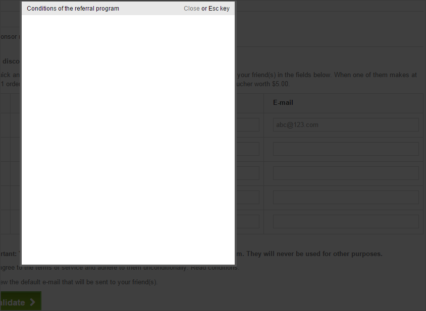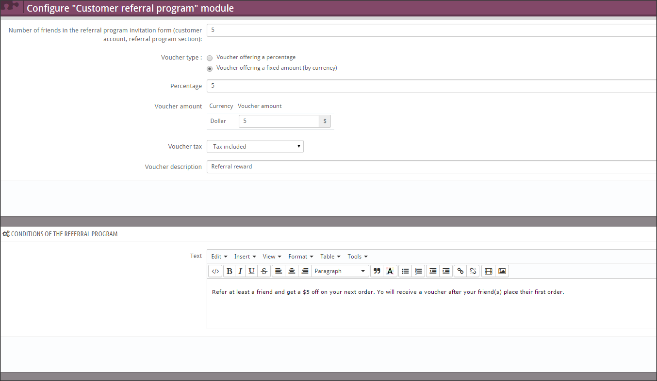 misu3108 Posted December 16, 2014 Share Posted December 16, 2014 I have setup the Referral Program set the text in BO like : "Refer at least a friend and get a $5 off on your next order" But no text shows for read conditions link or even the email preview. They are blank. Tried to uninstall and reinstalled the module but with no success. Anyone knows how to fix this? 1 Link to comment Share on other sites More sharing options...