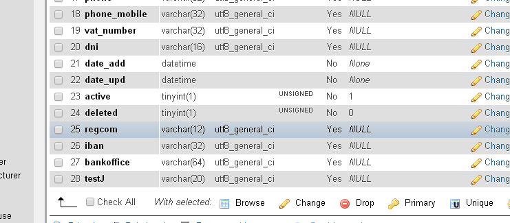Salus Posted December 17, 2014 Share Posted December 17, 2014 Hi everyone, I need some help again, truly, this php is killing me. I would like to modify dni field from adresses to be able to accept other type of data - I have to modify it to accept other formats with more characters. So far the dni field is restricted to some kind of spanish registration number, which is 9 digits long only. I have to modify it to accept 20 digits long mixed characters, like J12/3568/1992/something I found out it has something to do with validate.php, and again objectmodel.php, but really dunno what to modify in those files to get the desired result. I tried to modify the lenght of field dierctly in ps_adress table to varchar(20), but obviously that was not enough. Please HELP! Thanks a lot in advance and happpy holidays to everyone. PS: my other urgent unresolved topic follows: http://www.prestashop.com/forums/topic/388174-how-to-use-a-truefalse-value-for-showing-product-availability-on-screen/?do=findComment&comment=1899317 Link to comment Share on other sites More sharing options...