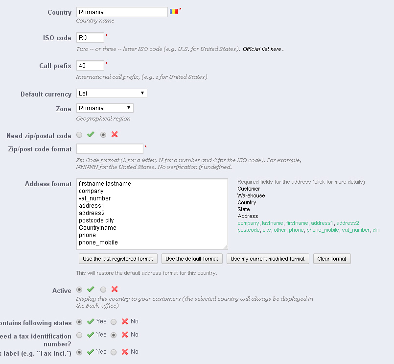 Salus Posted December 18, 2014 Author Share Posted December 18, 2014 (edited) Ok, please someone help me out with this, couse I`m going crazy. I gave up on modifying anything on existing fields, instead I created new field manually in the ps_adress table. I followed ever possible tutorial on how to make it visible on back office, some ppl even say you dont have to make any override, it will be shown. I tried everything, made override as instructed, or not, clearing controller cache, restoring database and home directory to a previous state, everything, still, the data field added DOES NOT SHOW UP where is shoud: localization -> countries ->mycountry ->edit -> adress format -> add fields form list. I use prestashop 1.5.6.1. I have 3 new fields added, none of them are shown into back office. So pelase someone tell me what am I missing here? Some screenshots about table BO. We are talking about last 4 records, from id 25-28 Compilaton is on forced, cache disabled in performance tab. I aint got no class_index.php to delete anywhere in classes folder, before you ask. THANKS. Edited December 18, 2014 by Salus (see edit history) Link to comment Share on other sites More sharing options...