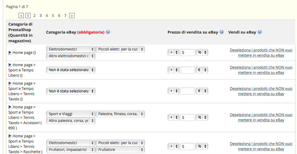 Modulo ebay 1.9.1 non cambia le pagine per poter mappare le categorie
