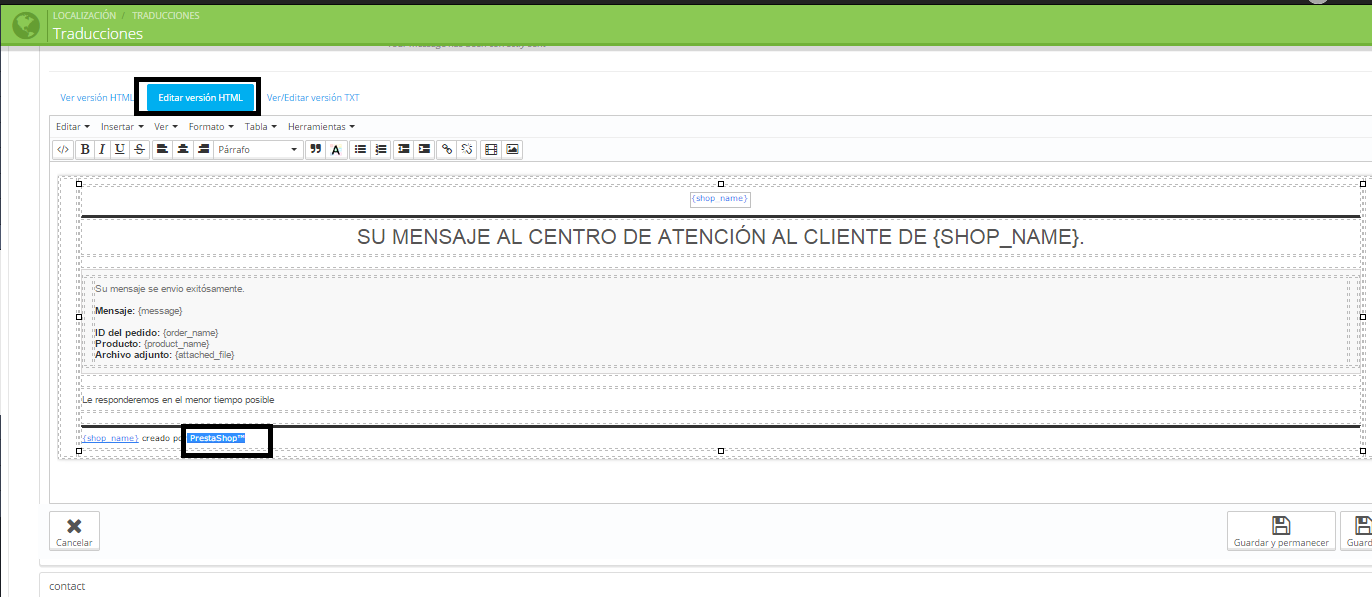 progger Posted December 19, 2014 Share Posted December 19, 2014 (edited) Hola a todos, el caso es que cuando me llegan un formulario de contacto, por ejemplo en el caso de que tengan alguna duda en mi web, justo a bajo de todo el mail me aparece lo siguiente: Eso me aparece en la parte de abajo de cada mail que envia mi web, ya sea copia para el cliente como copia para el administrador y no quiero que eso salga, eso sale acompañado del nombre de mi web justo a la izquierda y solo quiero que salga el nombre de mi web. El caso es que he ido a la dirección siguiente /mails/es/ alli me encuentro los siguientes archivos: contact.html contact.txt contact_form.html contact_form.txt He modificado en estos archivos y borrado el apartado donde pone lo de creado por prestashop y el link que crea, pero aún así me sigue saliendo, entonces no se que estoy haciendo mal. Saludos... Edited December 19, 2014 by progger (see edit history) Link to comment Share on other sites More sharing options...