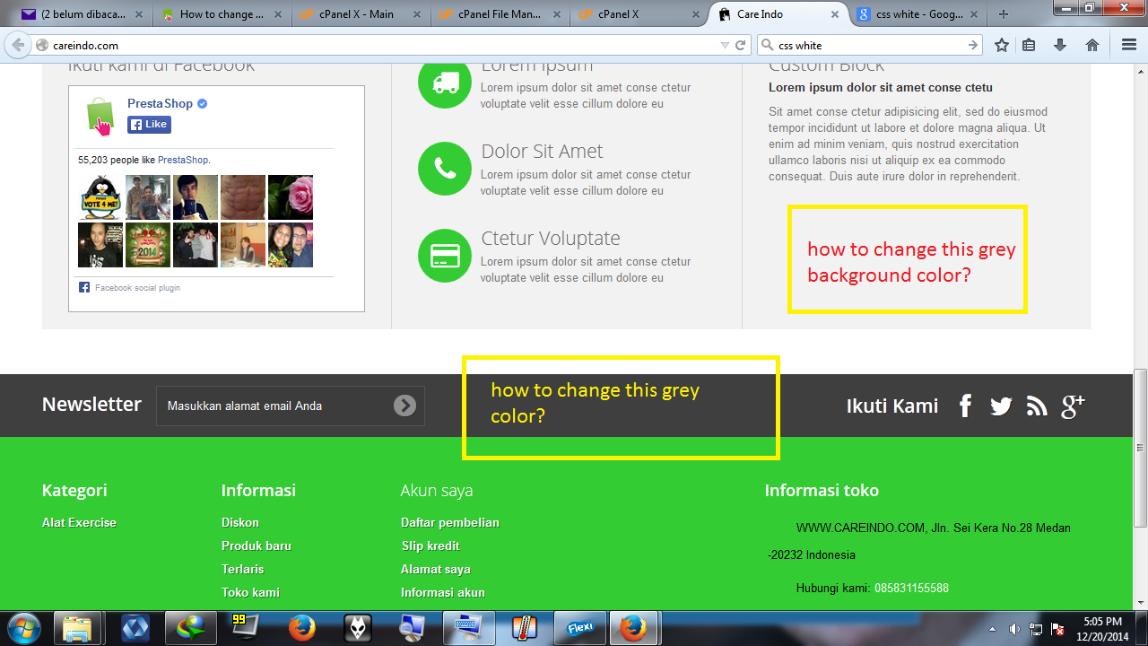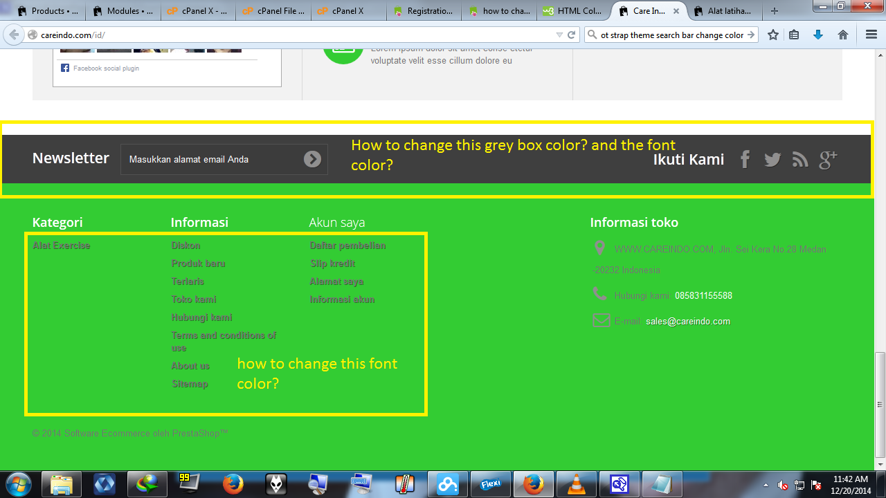careindo Posted December 20, 2014 Author Share Posted December 20, 2014 Dear Nemo1, Thanks for your info, I already managed to change the font, but still can't change this grey box color above the footer, at newsletter and follow us. Any idea? Both in global.css the first is .footer-container, while the text is .footer-container #footer a Link to comment Share on other sites More sharing options...