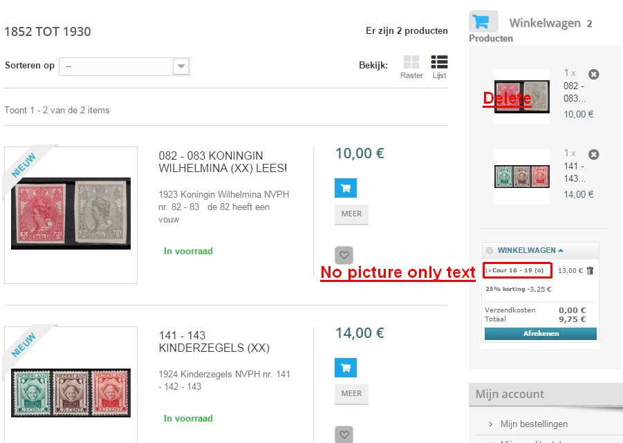 tukker Posted December 21, 2014 Share Posted December 21, 2014 (edited) I want to DELETE the picture out the shopping cart. I placed the shopping cart in the right column. See image. In the image you also can see what I like. So, no image, but only text. Can somebody tell me what I have to change in the code. Best regards, Erik Edited December 21, 2014 by tukker (see edit history) Link to comment Share on other sites More sharing options...