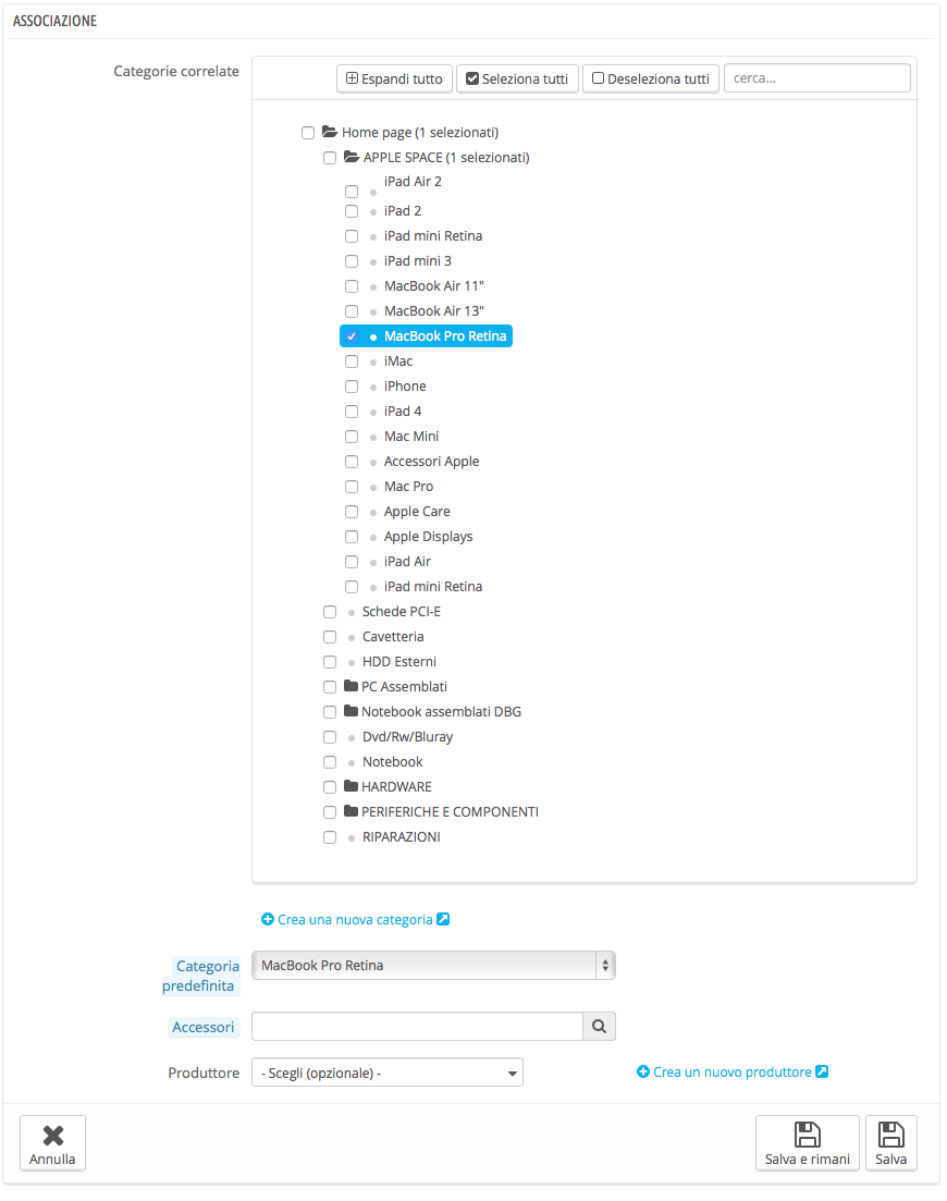 lucav87 Posted December 21, 2014 Share Posted December 21, 2014 (edited) Hi everybody, I have a problem with products and categories in which they are assign. In some case, when I assign product to category this product (in to the breadcrumb) appear in an other category. es. In my store, macbook pro retina is into the category. apple space -> macbook pro retina instead as you can see in the attachment , breadcrumb shows it inside: apple space -> macbook pro retina -> schede madri -> schede madri fascia alta This happen also when I open Macbook pro retina category (www.mystore.it/[spam-filter]macbook-pro-retina) and the breadcrumb shows: apple space -> macbook pro retina -> schede madri see the attachments. What can it be? How can I solve it? Thanks a lot, Luca Edited December 21, 2014 by lucav87 (see edit history) Link to comment Share on other sites More sharing options...