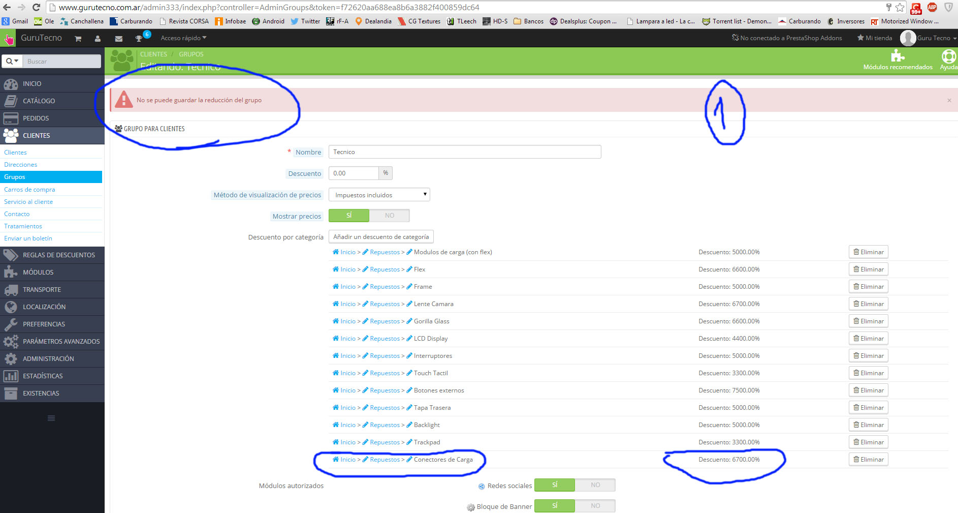 Y me sucede algo mas extraño aun, me doy cuenta que deja de andar cuando al cargar mas de 12 descuentos pongo GUARDAR me sale el error que se ve en el adjunto numero 1.