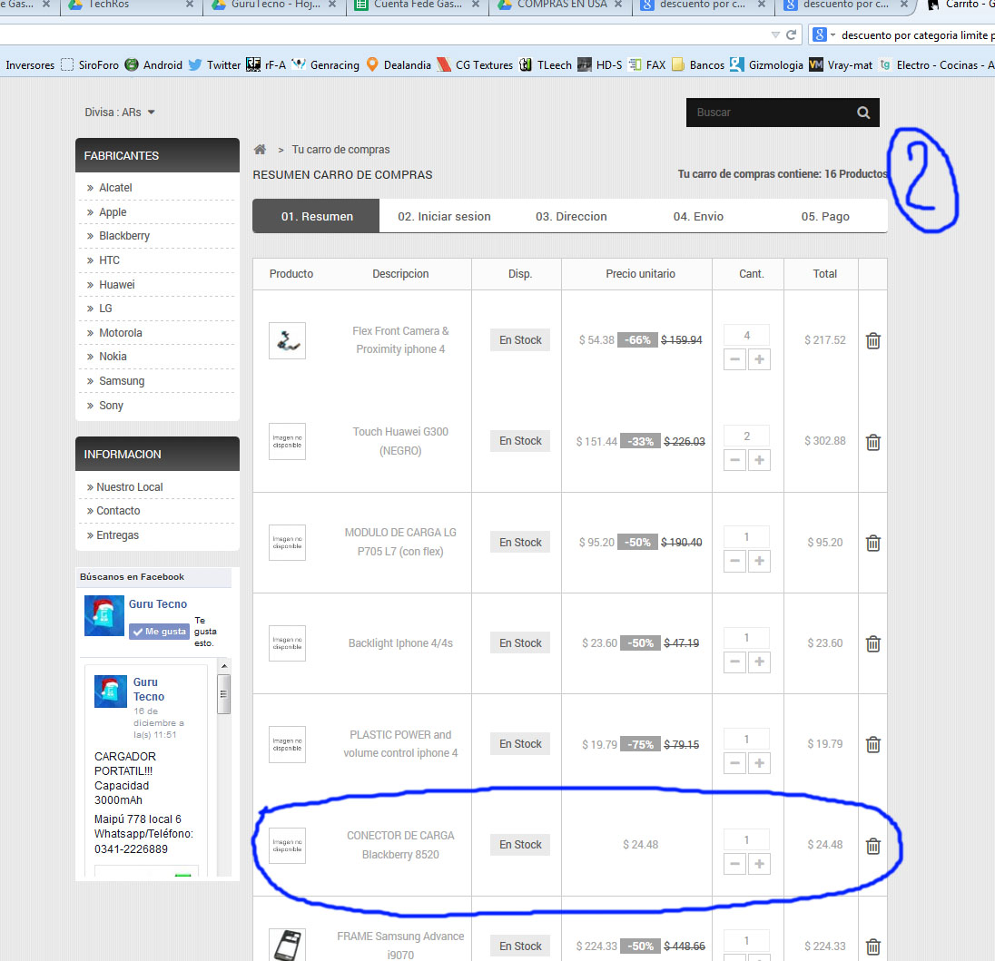 el problema surge que cuando aplico mas de 12 o 13 descuentos, empiezan a dejar de funcionar como pueden ver en el adjunto: si bien tengo aplicado el descuento a la categoria "conectores de carga" no se ve reflejado en el carro de compras.