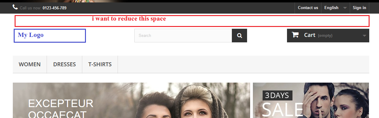 bhaskey Posted December 23, 2014 Share Posted December 23, 2014 (edited) Hi all, I am trying to reduce sapce (padding) between "top most bar and logo row", "logo row and category horizontal menu". Please see the picture if you did not understand what i mean: I reduced "padding-top" for blocksearch and blockcart which was 50px. these two sections are moved up but logo is kind of relative in size, even if i use less height of logo it is streched to its original size. How can i change this, someone PS expert please reply. Edited December 24, 2014 by bhaskey (see edit history) Link to comment Share on other sites More sharing options...