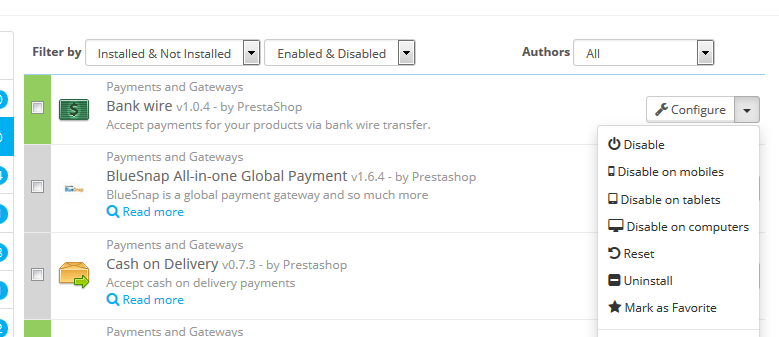 Owen Ho Posted December 25, 2014 Share Posted December 25, 2014 Hi All, I have try to test run the prestashop, when I am doing checkout and at the payment section, it show ( no payment module has been install. ) photo attached. I have check on the modules side and there is a bank wire modules showing install in prestashop. I have put in all the bank info inside but still have the same problem. Kindly help. Thank you very much. Regards, Owen Ho Link to comment Share on other sites More sharing options...