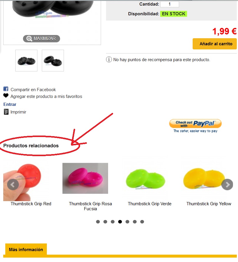 marvarez Posted December 27, 2014 Share Posted December 27, 2014 (edited) Buenas, he adquirido el módulo de pago de productos relacionados. Estoy muy contento con él salvo en algunas limitaciones: Me gustaría ponerle un fondo de color al texto "productos relacionados" y ya de paso, cambiar el color del texto. He estado indagando en los archivos CSS del módulo pero no doy con la tecla. Si fuéseis tan amables de explicarme cómo puedo hacerlo os estaría muy agradecido. Mi PS es 1.5 y mi web www.accesoriosparaconsolasymas.es Adjunto captura con lo que me refiero que quiero modificar. PD: comentar que el módulo funciona muy bien, tengo activado que los productos estén sin IVA y en el carrouselo me salen con el IVA incluído, no sé porqué. Muchas gracias por vuestro apoyo, como siempre, inmejorable. Saludos! Edited December 27, 2014 by markezmarkez (see edit history) 1 Link to comment Share on other sites More sharing options...