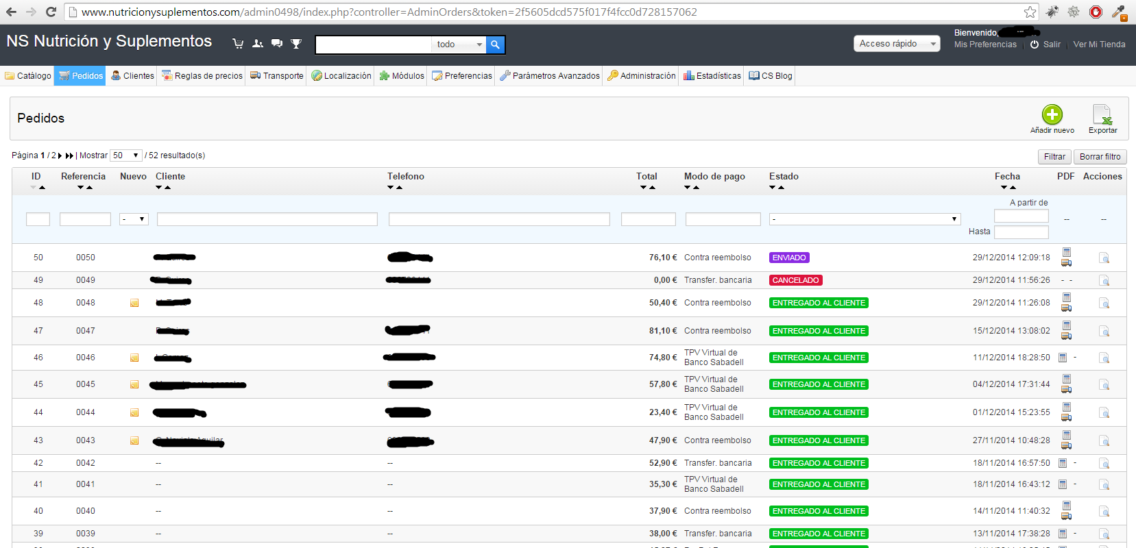 juampaa15 Posted December 31, 2014 Share Posted December 31, 2014 (edited) Hola comunidad, Necesito ayuda cuanto antes mejor, el tema esta en que hace dos días me iba la pagina perfectamente, y ayer al abrirla y ir a pedidos (en backoffice) y clicaba en un pedido no me salia nada, solo un frase "Volver a la lista" y no podia ver los pedidos. Lo solucioné llamando a mi hosting y pidiendo que restauren la pagina a unos días atrás y me volvió a funcionar, pero hoy al abrirla me vuelve a pasar los mismo No tengo ni idea de porque es... y la pagina esta operativa, tengo que arreglarlo lo antes posible, espero que alguien me pueda ayudar. Adjunto imágenes: Pagina de pedidos, hasta aquí bien: Cuando entro en un pedido, aquí esta el error que no puedo solucionar: No me había pasado nunca.. La página es www.nutricionysuplementos.com Espero vuestra ayuda! Muchas gracias Edited January 2, 2015 by juampaa15 (see edit history) Link to comment Share on other sites More sharing options...