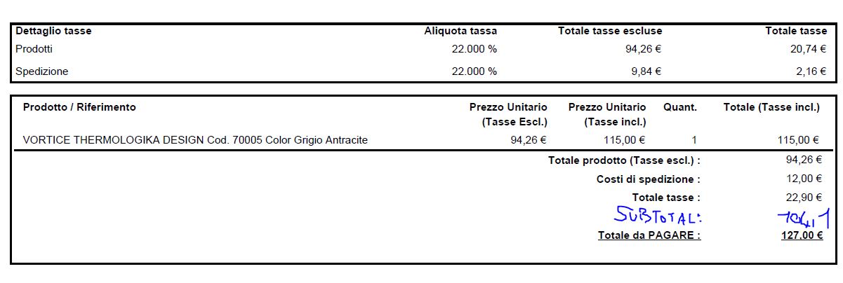 Essemme_Forniture Posted January 2, 2015 Share Posted January 2, 2015 Hello guys, i made my layout invoice... trust me isn't easy at all for a noob, but when i'll do some money i'll buy m4 pdf extension cause i think that it's the best module for pdf... anyways, i can't understand how i can put the subtotal ( product + shipment ) in the attached files you can see. I'd like to have, at the end, just Subtotal : 104.10 Taxes: 22.90 Total to pay : 127.00 what kind of variable i've to use? Thanks for your support Link to comment Share on other sites More sharing options...