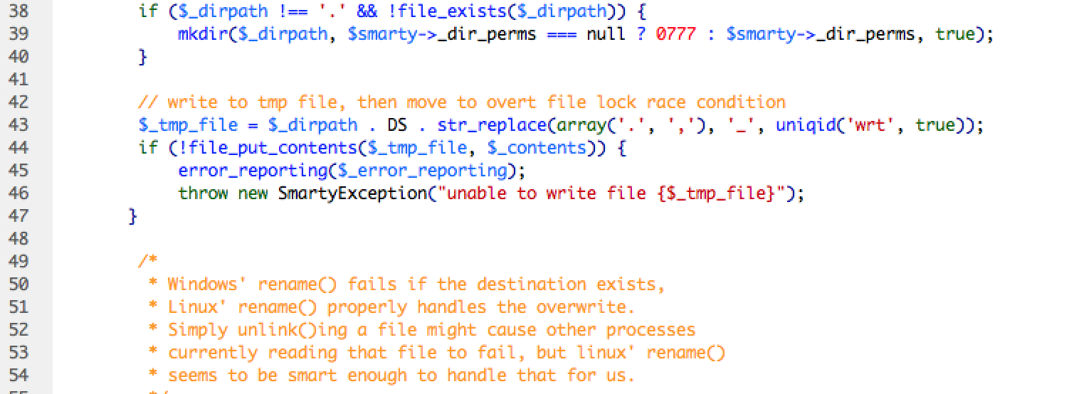 larscpedersen Posted January 6, 2015 Share Posted January 6, 2015 Hi Guys I would be very happy if someone could help me with this problem - apparently Google (my friend who normally helps me) could not give me the answer! I get the following message in my error_log PHP Fatal error: Uncaught --> Smarty: unable to write file /home/sayskydk/public_html/cache/smarty/compile/04/f3/33/wrt54aac43ba92986_24505309 <--thrown in /home/sayskydk/public_html/tools/smarty/sysplugins/smarty_internal_write_file.php on line 46 and I get blank (white) page I have attached a screenshot of line 46 ! Thanks for helping me Cheers, Lars http://shop.saysky.dk Link to comment Share on other sites More sharing options...