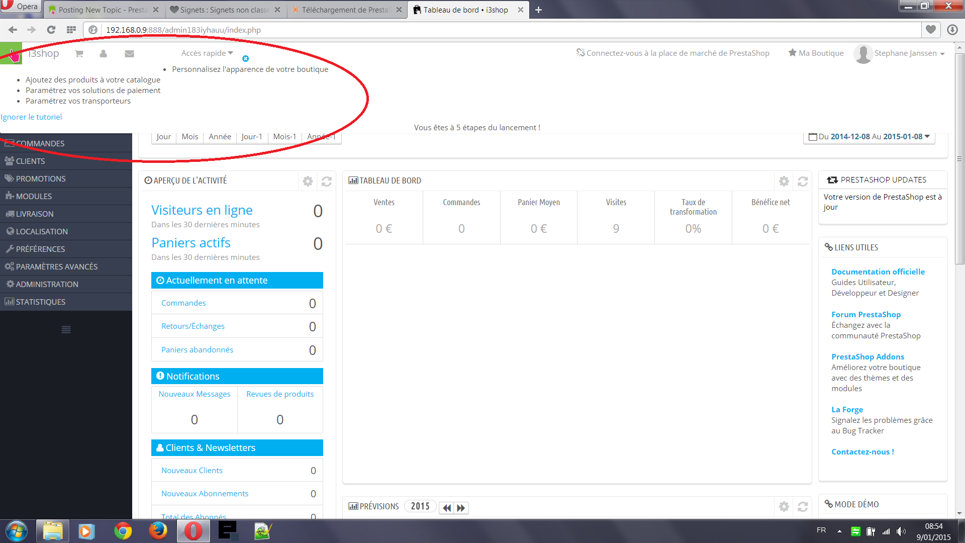 I'm using PS 1.6.0.11 on a local win 7 machine but I cannot remove the top banner with the ignore tutorial link and because of that I cannot see the product and category button on the left.