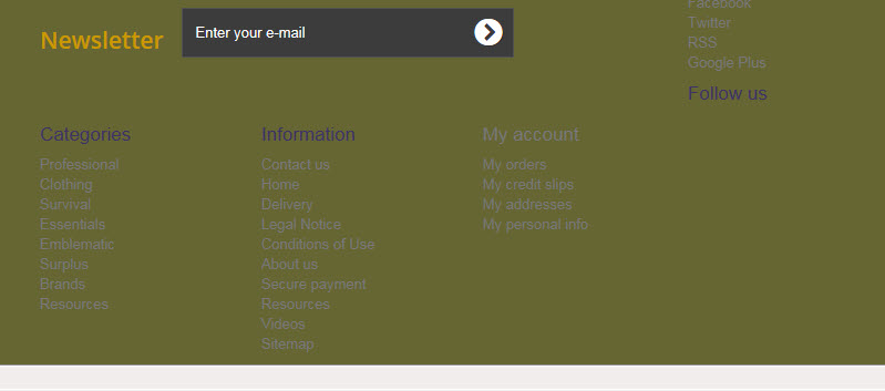 michaelbragg Posted January 10, 2015 Share Posted January 10, 2015 Thank you in advance. My page after something happened is now dropped the three items Facebook, Map and too many columns and wrong colors and wrong hover colors. Also missing Social icons URL: http://www.abnarmysurplus.com background: #666633 lower footer background image: footer-bg.jpg (#3D3366) Font Color: #CC9900Font Hover Color: yellow Social Icons: #CC9900 hover: yellow Link to comment Share on other sites More sharing options...