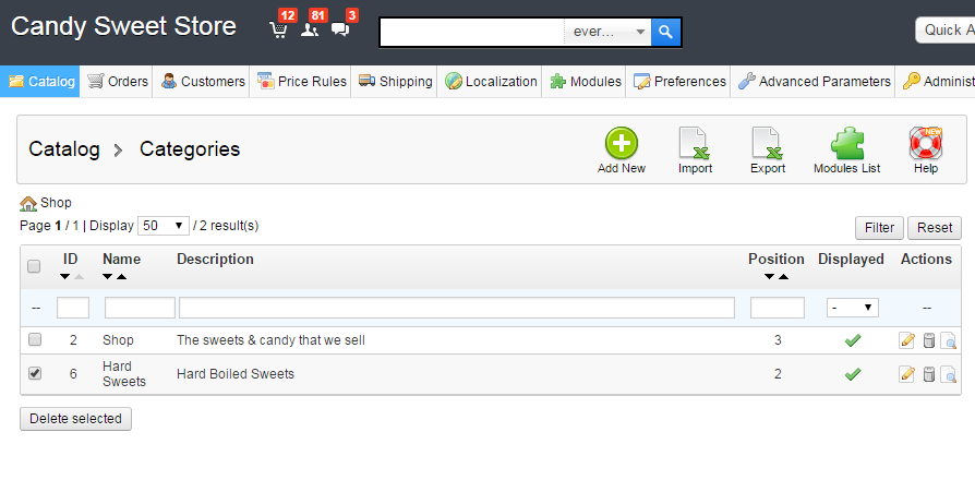 thadunno Posted January 12, 2015 Author Share Posted January 12, 2015 Yes, that seems to have happened when it was updated. All of the categories used to be under Shop, as it should be. When he updated the description of the category, it timed out, and when he went back to edit it, he noticed he had two categories in root, Shop and Hard Sweets, and the original categories that still work were under Shop as per usual. For some strange reason, when he updated the category Hard Sweets, it seems to have jumped out of the Shop category and appeared in Root. He never used to see Shop as a category before, when he clicked categories it was a list of all the categories he had created, but now he has to click Shop in order to see the rest of them, as in the picture above.I tried deleting the Hard Sweets category from the Top Menu and adding Hard Sweets that isn't under the Shop category for a quick fix, but that produces the same 404. Sorry if this is confusing, trying to work out the best way to word it! Link to comment Share on other sites More sharing options...
